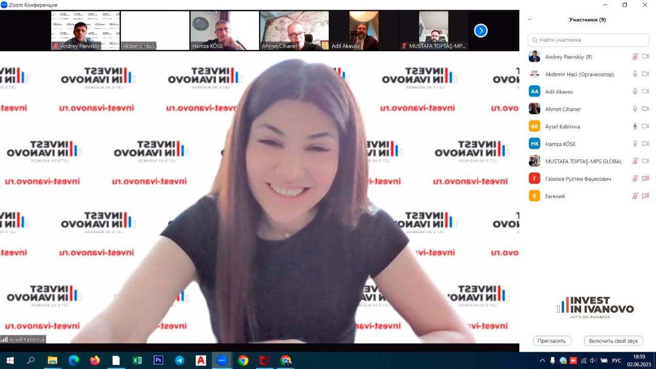 В Агентстве по привлечению инвестиций проходят ежедневные онлайн-встречи с представителями турецкого бизнеса. На прошлой неделе сотрудники организации Андрей Паевский и Айсель Кабирова провели переговоры с несколькими профильными ассоциациями. Главной темой встреч стала организация визита турецкой делегации в рамках бизнес-миссии в Ивановскую область.