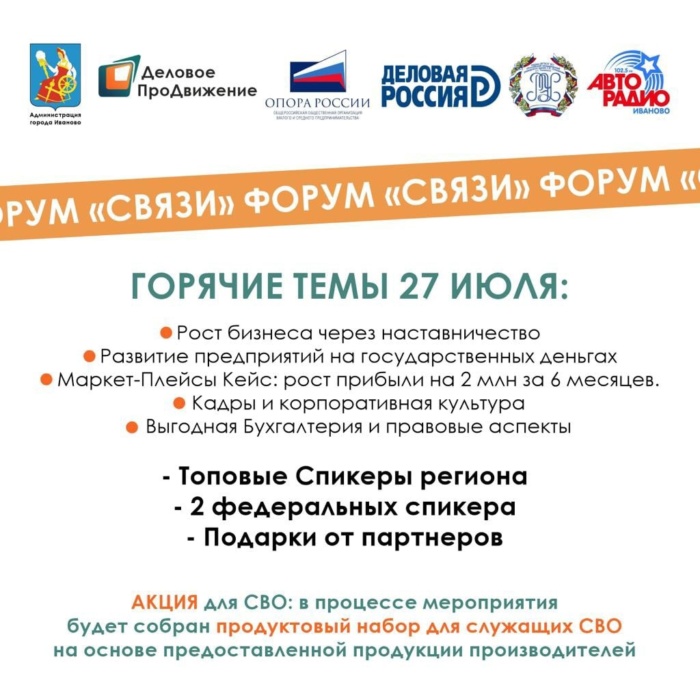 Масштабное событие этого лета для развития российского производства пройдет в Ивановской области с 27 по 30 июля. Форум «Связи» объединяет представителей власти, образования и бизнеса для создания межрегиональных связей и продвижения российского производства в мировые лидеры.