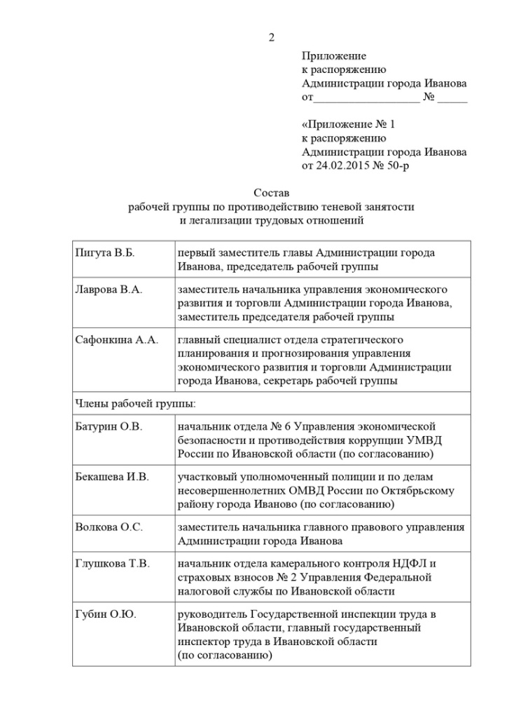 В связи с кадровыми изменениями и т.д. распоряжением администрации города Иваново актуализирован состав рабочей группы по противодействию теневой занятости и легализации трудовых отношений под командой первого замглавы Владимира Пигуты. Теперь рабочая группа выглядит так:
