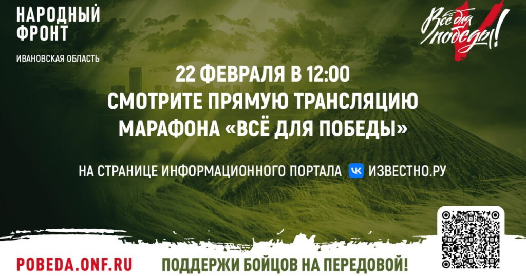 В преддверии Дня Защитника Отечества 22 февраля в Ивановской области пройдет четырехчасовой благотворительный онлайн-марафон «Всё для Победы!». Все собранные средства будут переданы в региональный фонд «Своих не бросаем» – на поддержку ивановских военнослужащих.