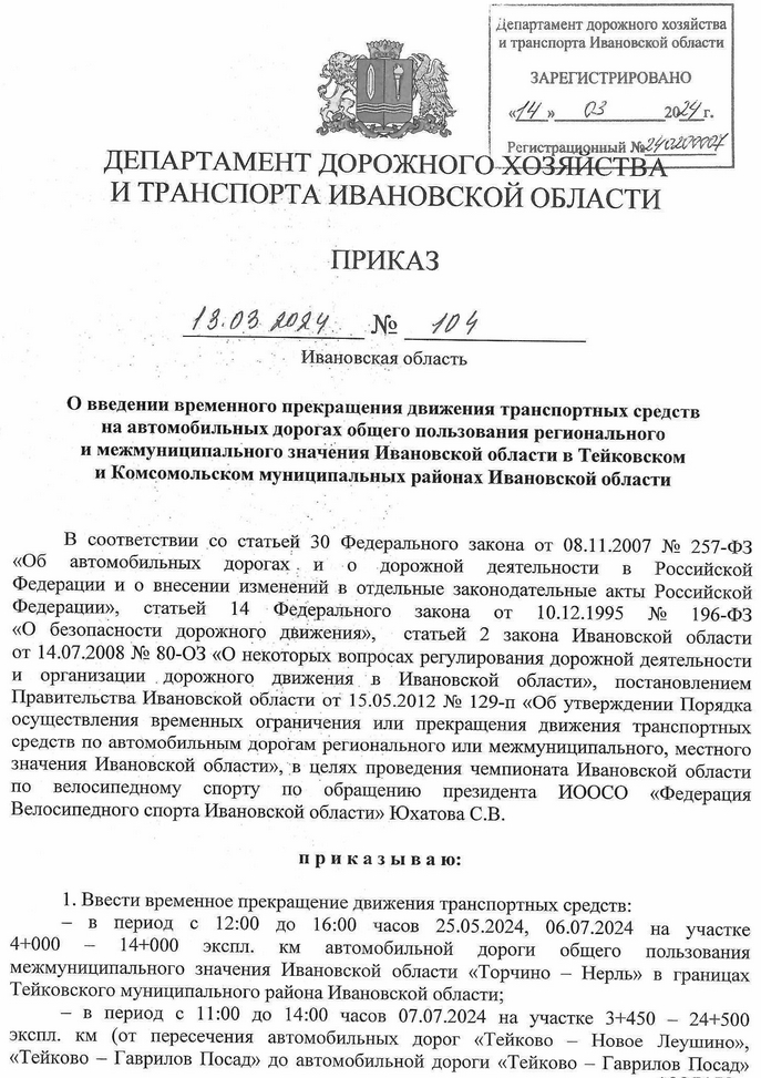 На некоторое время в некоторых местах Автор: Александр Элькинд Согласно приказу департамента дорожного хозяйства и транспорта Ивановской области от 13 марта 2024 года на участках ряда автодорог (где именно см.