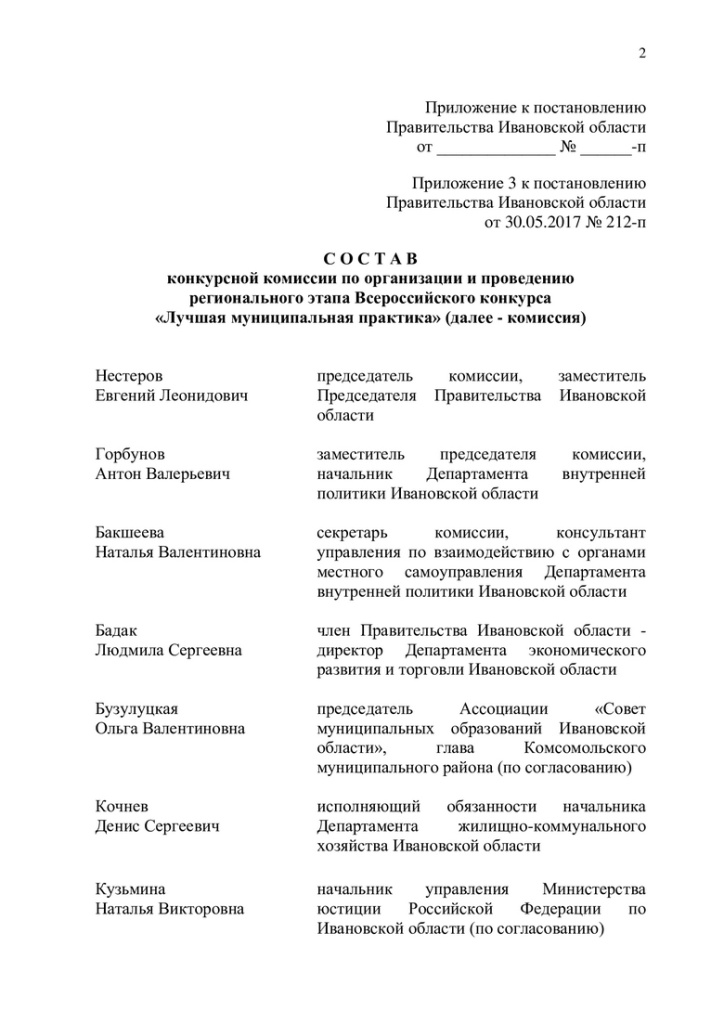 Актуальный состав Автор: Александр Элькинд Департамент внутренней политики региона подготовил проект постановления облправительства «О внесении изменений в постановление Правительства Ивановской области от 30.05.