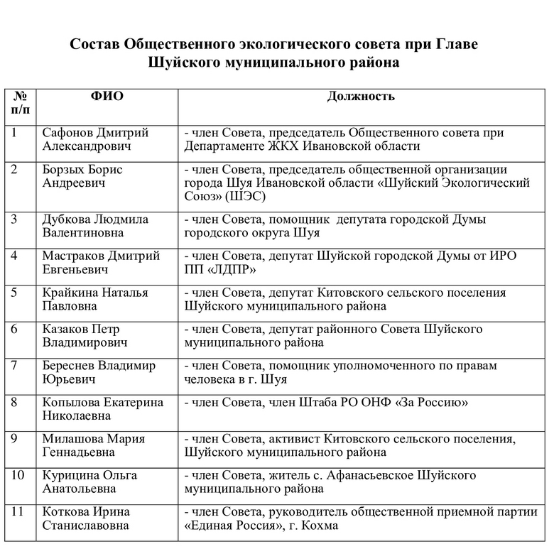 На фоне экологического возбуждения в Шуйском районе Ивановской области власти не нашли ничего лучшего, чем сколотить общественный экологический совет при главе района Сергее Бабанове. В него собрали кого только можно, начиная с отметившегося еще в истории с австрийским «Эггером» председателя «Шуйского экологического союза» Бориса Борзых и обозначенного как просто «активист» Владимир Возилов до члена штаба реготделения ОНФ Екатерины Копыловой и председателя реготделения «Союза садоводов России» Светланы Семушкиной.