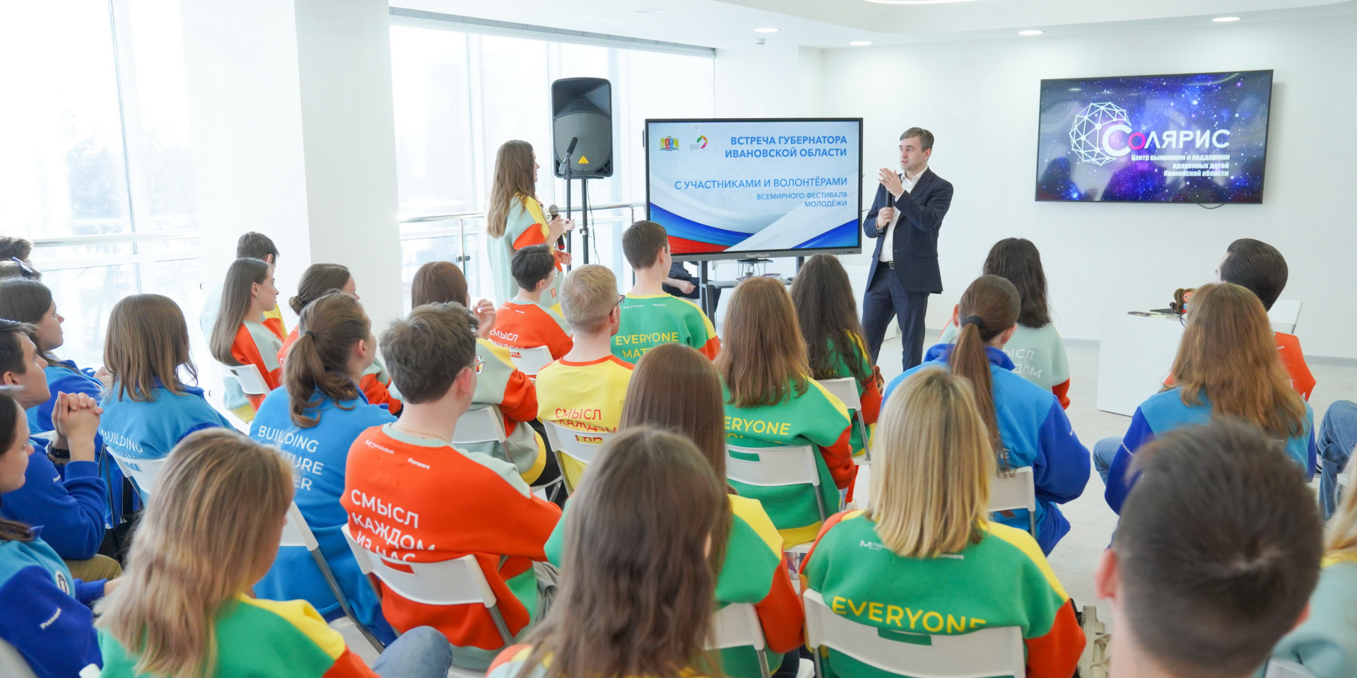 Сегодня в центре выявления и поддержки одаренных детей “Солярис” губернатор Станислав Воскресенский встретился с участниками Всемирного фестиваля молодежи из Ивановской области.