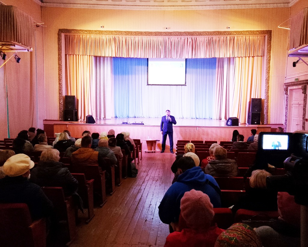 Глава Пучежского муниципального района Игорь Шипков встретился с пучежанами. Мероприятие прошло в Районном доме культуры и собрало порядка полутораста человек.