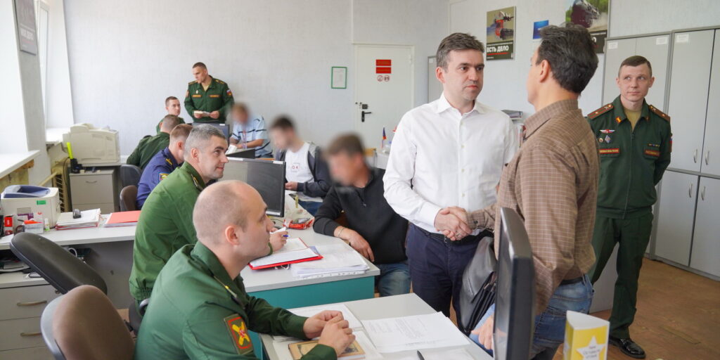 9 июня, губернатор Станислав Воскресенский ознакомился с работой пункта отбора на военную контрактную службу, который размещен в здании областного военкомата на улице Сарментовой в Иванове.