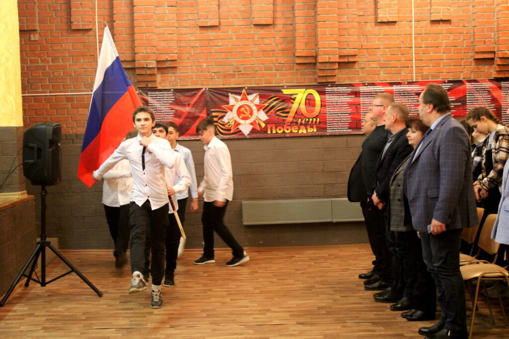 Торжественное мероприятие началось с выноса флага Российской Федерации под звуки марша Преображенского полка – одного из старейших в России, появившегося еще в эпоху Петра I. Церемония приема новичков в клуб прошла на школьной сцене.