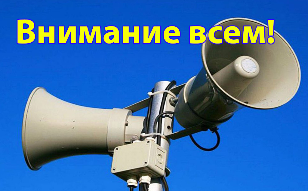 В рамках проверки РАСЦО в период с 10.40 до 10.43 планируется подача сигнала «Внимание всем!» с запуском электрических сирен, выносных акустических установок и блоков акустического оповещения, а также в период с 10.43 до 10.44 передача информационного ролика ««ПРОВОДИТСЯ ПРОВЕРКА ГОТОВНОСТИ СИСТЕМЫ ОПОВЕЩЕНИЯ НАСЕЛЕНИЯ! ПРОСЬБА СОХРАНЯТЬ СПОКОЙСТВИЕ!» по сети цифрового телевизионного вещания.