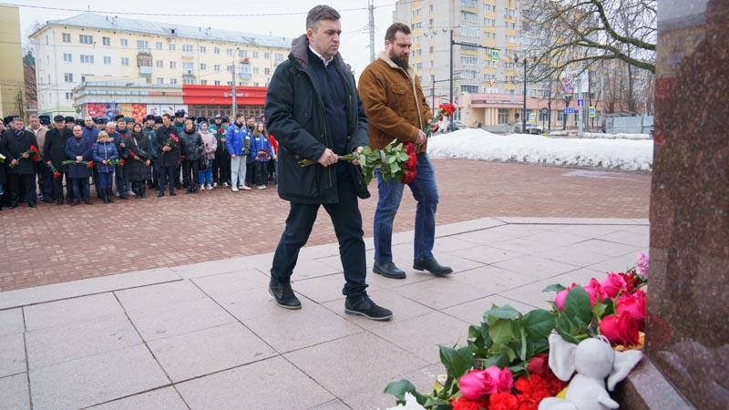 Участники возложили цветы к памятнику Георгию Победоносцу на площади Победы в Иванове и почтили минутой молчания погибших в «Крокус Сити Холле».