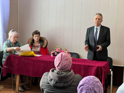 Николай Иванович рассказал о ситуации в районе по общим вопросам, более конкретно остановился на самой актуальной в настоящее время теме – проведении специальной военной операции. Глава района выразил огромную благодарность жителям деревни, за то, что они очень серьёзно и с душой откликнулись на всеобщий клич по сбору гуманитарной помощи участникам СВО.