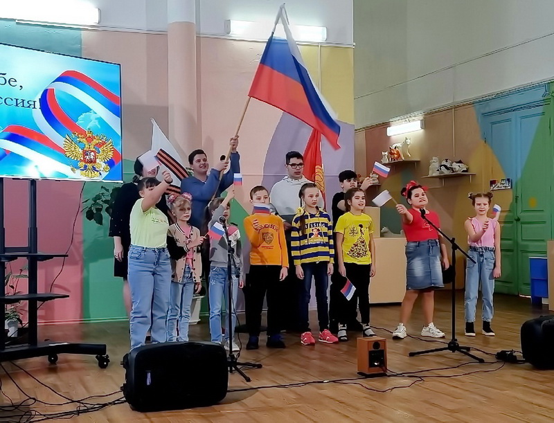 Это был необычный концерт. Дети не просто пели песни о Родине, о России, о мире, о солнце, они пели песни защитникам, тем, кто сейчас находится на передовой, в зоне проведения СВО.