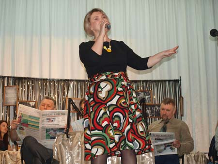 Ольга Михайловна, как оказалось, в этот раз не только руководитель вокального коллектива, но и сценарист спектакля. А еще она одна из самых активных участниц - и актриса, и исполнитель, и режиссер. Переживание за благополучие всего концерта было написано у нее на лице. Она успевала и сольно выступать, и играть, и зорко следить за ходом действа. Одним словом, человек-оркестр!