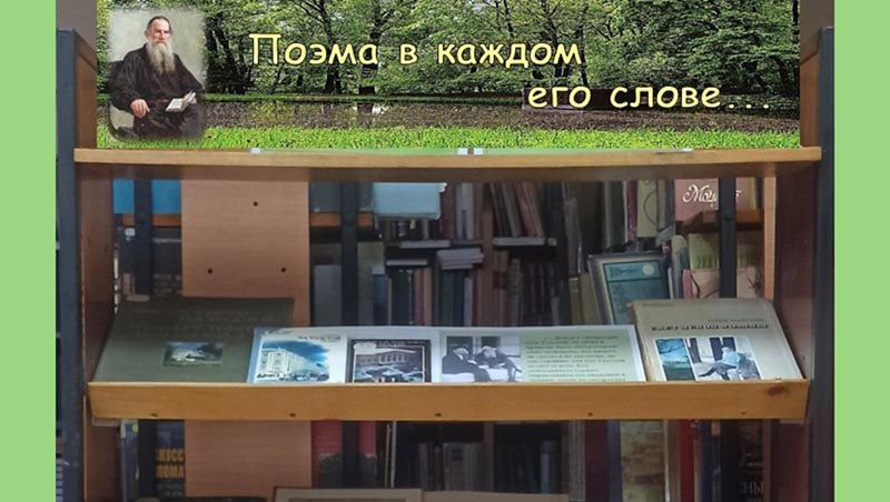 К 195-летнему юбилею великого русского писателя в филиале Тейковской городской библиотеки оформлена книжная выставка «Поэма в каждом его слове…». В первом разделе выставки «Свет ясной поляны» представлены издания, раскрывающие жизненный и творческий путь Льва Николаевича, факты из его биографии, а также воспоминания современников о жизни Толстых в усадьбе Ясная Поляна. Второй раздел выставки «Мир Льва Толстого» познакомит с наиболее известными произведениями писателя: «Война и мир», «Анна Каренина», «Хаджи-Мурат», «Детство» и другими.