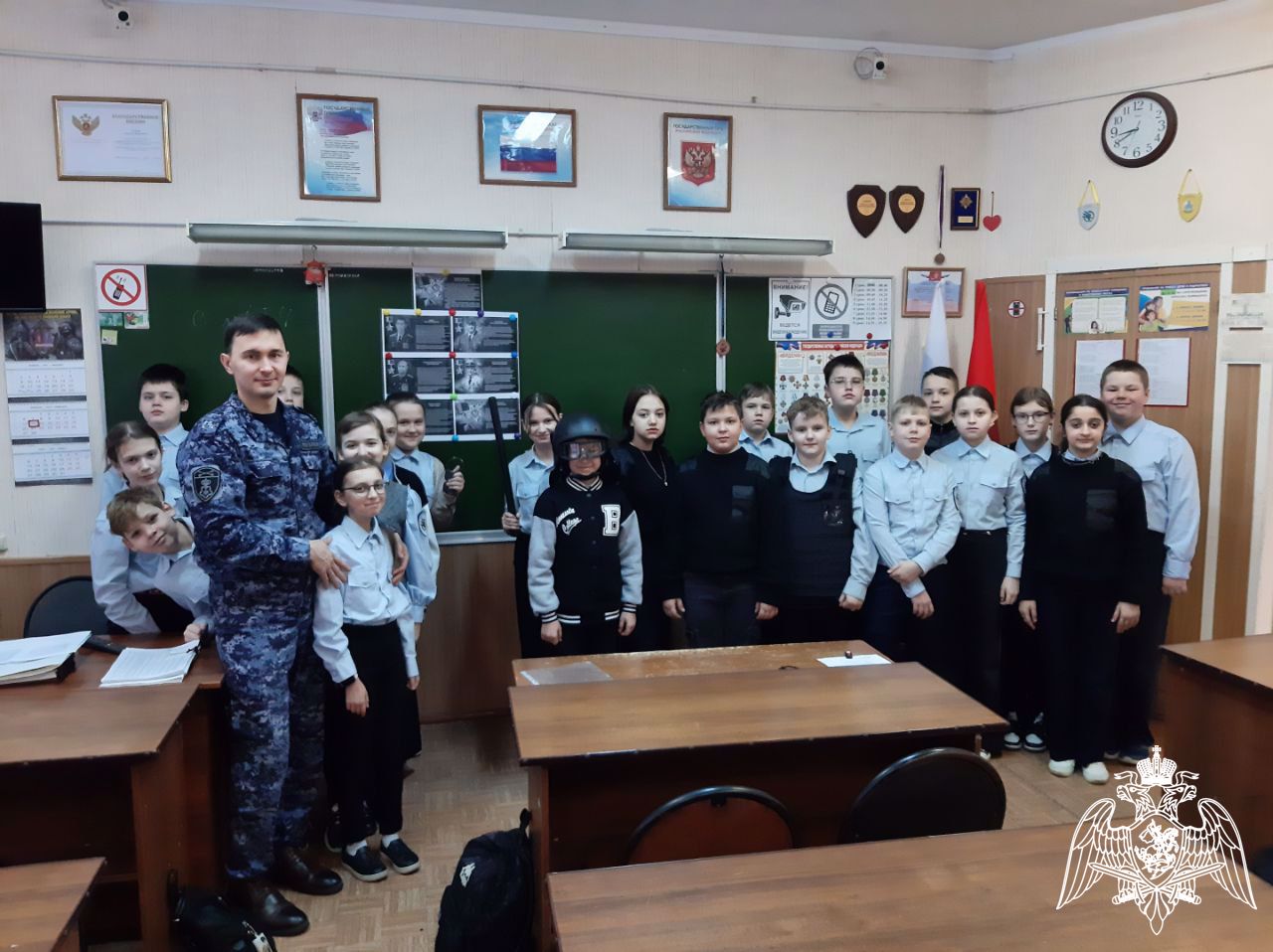 В завершении росгвардеец поздравил ребят с наступающим Днем защитника Отечества.