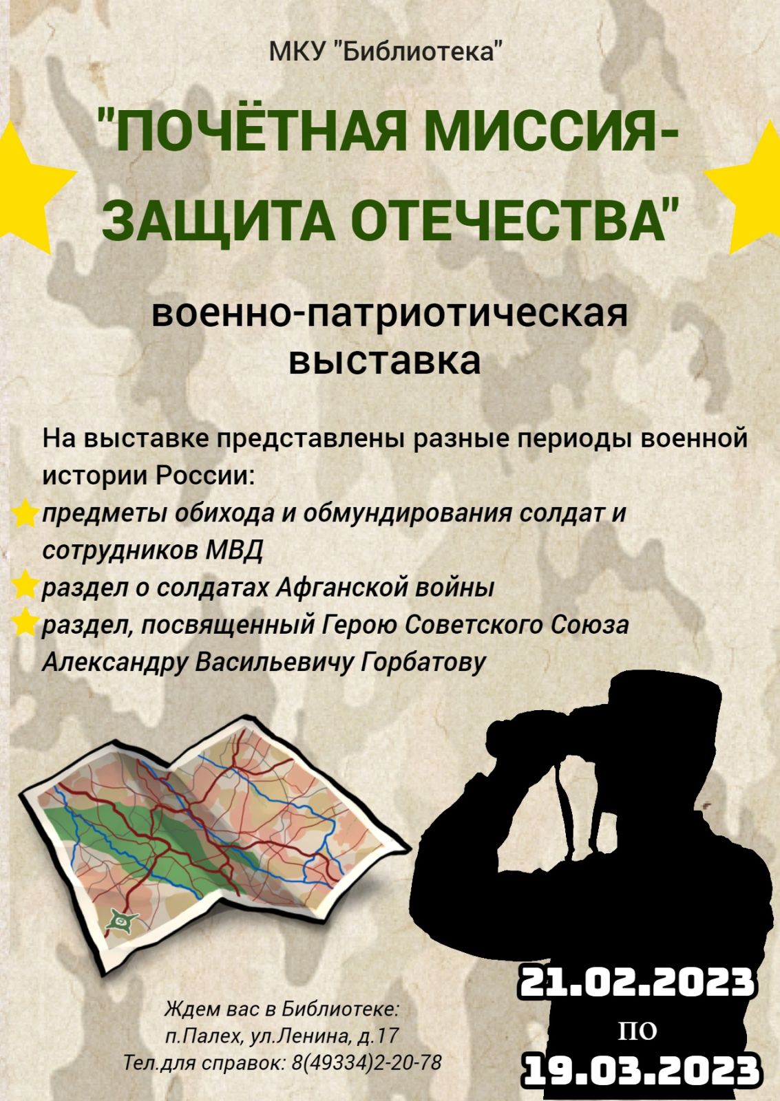 В Палехской библиотеке состоялось открытие военно-патриотической выставки "Почётная миссия - защита Отечества"