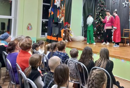 После того как все товары были распроданы, гостей мероприятия пригласили в актовый зал, где на сцене развернулось сказочное действо.История о коварной колдунье, которая решила захватить волшебный посох Деда Мороза и погубить Новый год, не оставила равнодушными ни детей, ни взрослых. Все присутствующие смогли очутиться в волшебном мире сказки о царе Горохе, царевиче Иване и прекрасной Жар-птице.