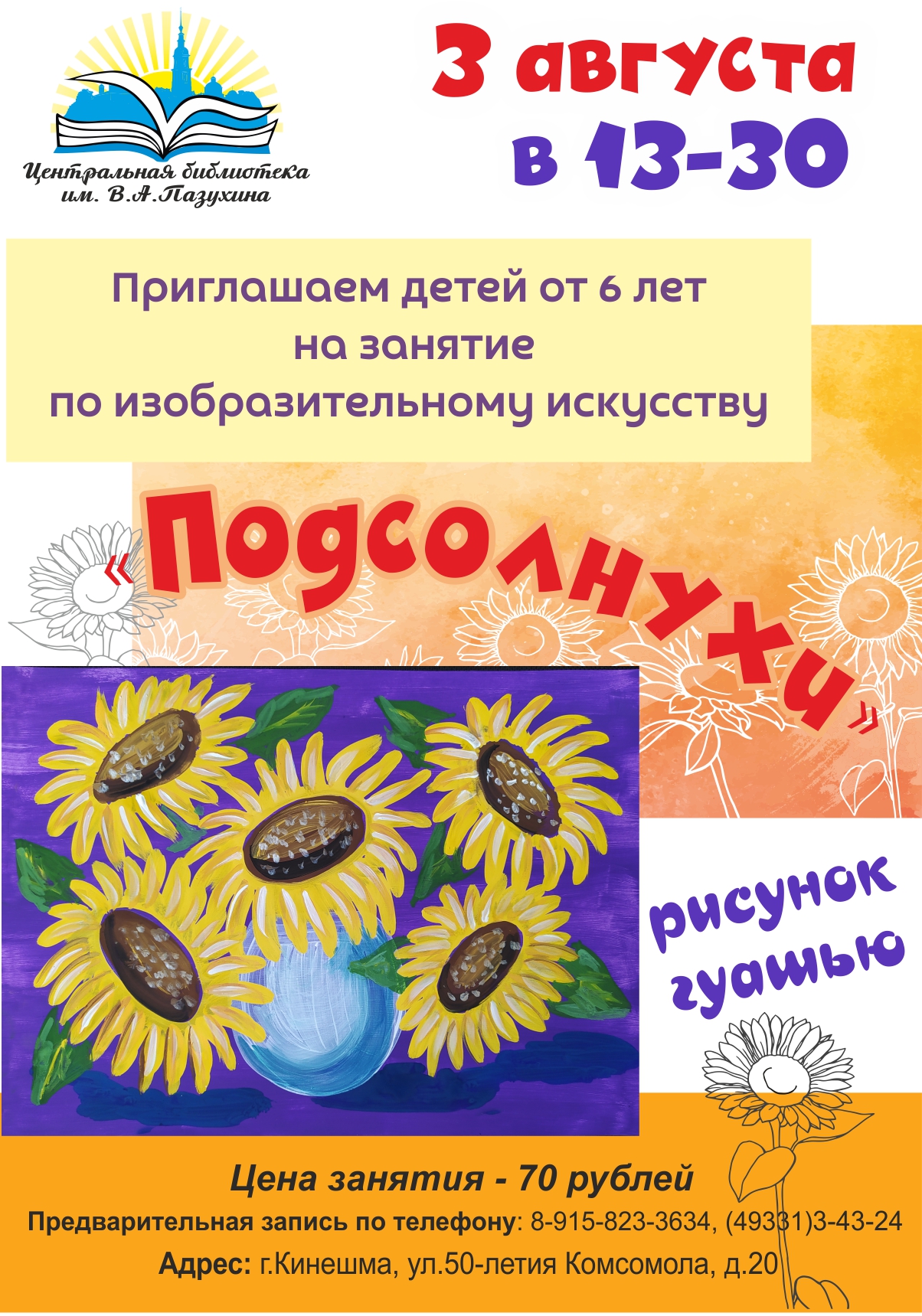 На очередном занятии 3 августа изобразим с ребятами эти удивительные цветы.Для творчества предоставляются все необходимые инструменты и материалы. Записаться на занятие можно по телефону 8-915-823-3634 или в сообщениях.