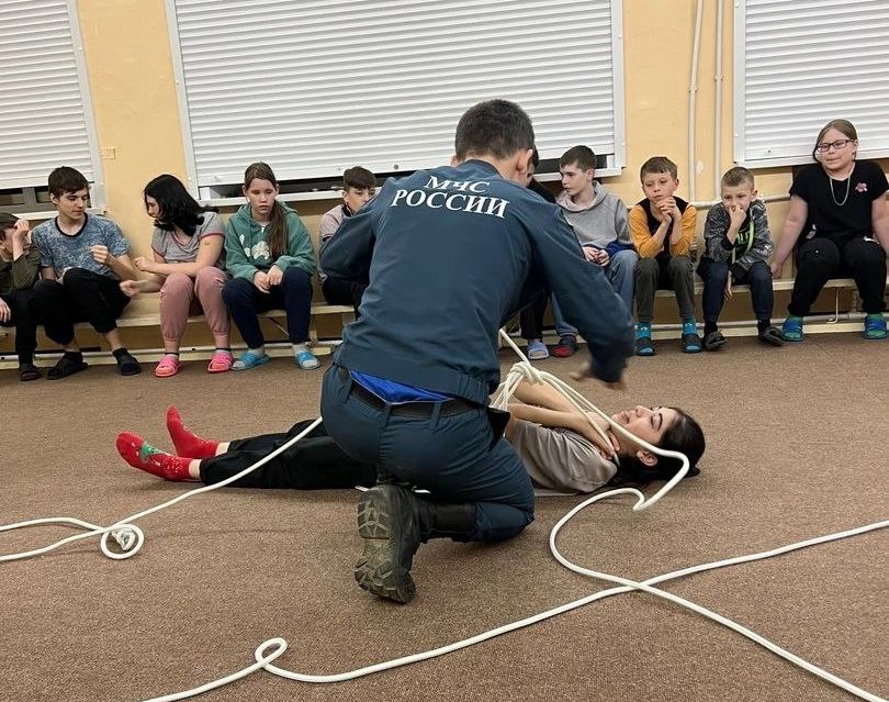На уроке дети узнали что такое транспортировка пострадавших и для чего она необходима. Добровольцы Академии показали ребятам как правильно оказывать различные способы транспортировки с применением собственных усилий и при поддержке товарища. Дети попробовали каждый из вариантов.Также ребятам была продемонстрирована пожарная эвакуационная петля и то, как её можно использовать. Дети с большим интересом попробовали выполнить плечевую петлю для транспортировки пострадавшего из непригодной для дыхания среды, а также изготовить носилки. Кроме того, студенты показали подопечным "Ровесника", как выполняется двойная спасательная петля и в каких случаях она применяется.