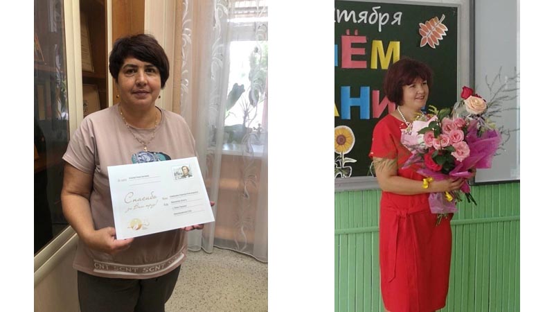 В Новолеушинской школе в торжественной обстановке вручили открытки со словами благодарности Надежде Александровне Климашиной и Анне Валентиновне Аминовой.