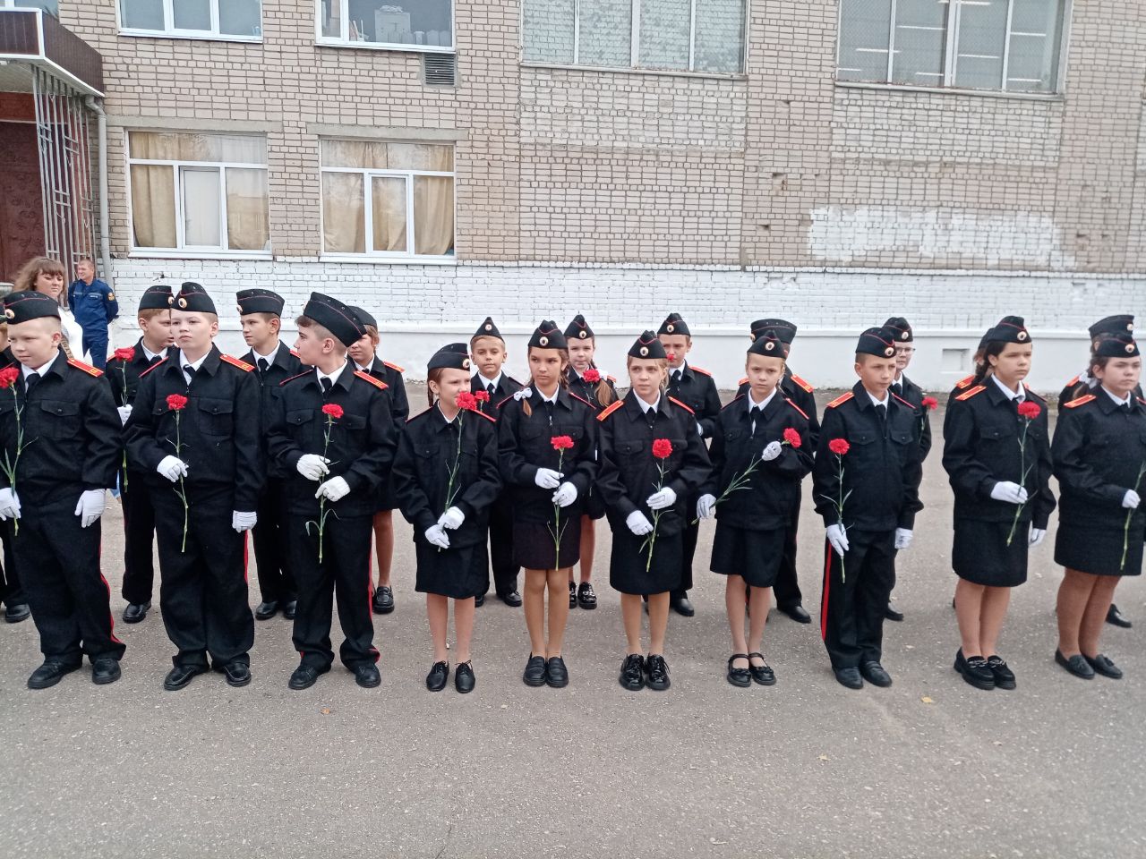 С приветственным словом к собравшимся в зале обратились директор школы Задворнова Вера Георгиевна и Сажина Мария Владимировна. Они отметили, что кадетский корпус является гордостью школы, ребятам уже много лет нет равных в различных видах соревнований. Пожелали в дальнейшем продолжать достигать таких же высоких результатов, а вступившим в ряды кадет ребятам, брать пример со своих старших товарищей.
