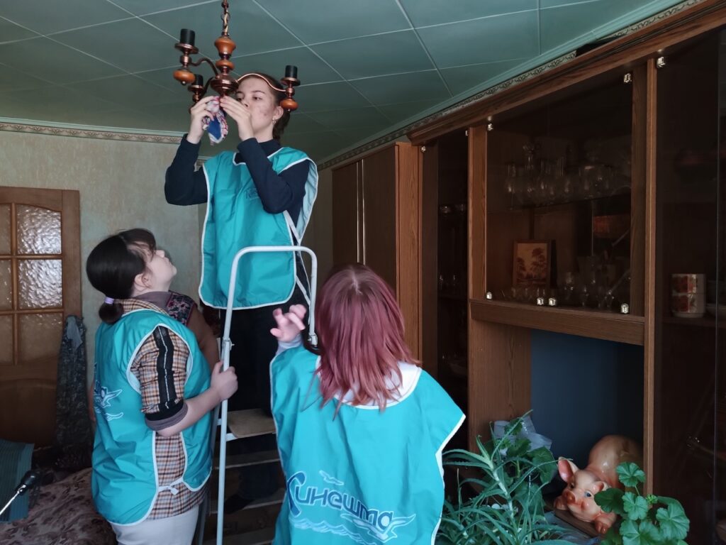 В Кинешемскую общественную приёмную партии “Единая Россия” обратились несколько пожилых одиноких людей с просьбой помочь вымыть окна и навести чистоту в квартире перед светлым Пасхальным праздником. Студентки Кинешемского педагогического колледжа Наталья Соколова, Татьяна Нечаева и Анна Норицына в назначенный день приехали к пожилым людям и начали выполнять работы. Девочки вымыли окна, стены и люстры.