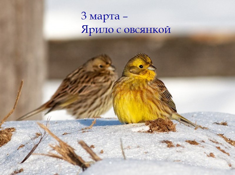 По приметам на 3 марта судили о предстоящем урожае. В народном календаре дата получила названия Ярилин день, Ярило с птицей овсянкой, Овсянка, а все потому, что в этот день наши предки почитали птичку-овсянку – вестницу скорого тепла.