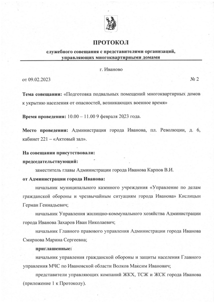 Так вот, специально для таких умников публикуем официальный документ под названием «Протокол служебного совещания с представителями организаций, управляющих многоквартирными домами» от 9 февраля 2023 года. В нём и дата, и место, и фамилии чиновников разного пошиба, и эмчээсовец.
