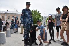 Самой динамичной и зрелищной частью праздника стало выступление полицейских кинологов. Перед показательным выступлением полицейские провели викторину для юных гостей, вопросы в которой была на кинологическую тематику. Затем, специалисты этой сферы продемонстрировали методики раскрытия преступлений при помощи специально обученных служебных собак и показали динамичную сцену задержания преступников с их помощью.