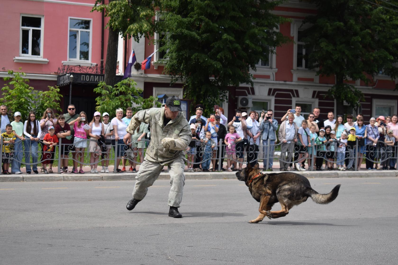 Самой динамичной и зрелищной частью праздника стало выступление полицейских кинологов. Перед показательным выступлением полицейские провели викторину для юных гостей, вопросы в которой была на кинологическую тематику. Затем, специалисты этой сферы продемонстрировали методики раскрытия преступлений при помощи специально обученных служебных собак и показали динамичную сцену задержания преступников с их помощью.