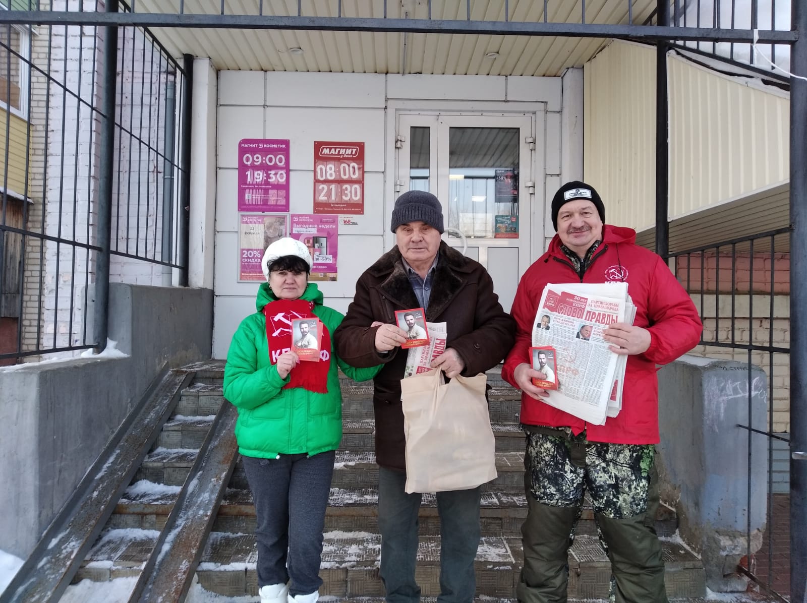 Ко Дню Советской Армии и Военно-морского флота коммунисты Кинешемского районного отделения КПРФ вышли на улицы города Наволоки для поздравления жителей и распространения газет и поздравительных открыток Ивановского обком