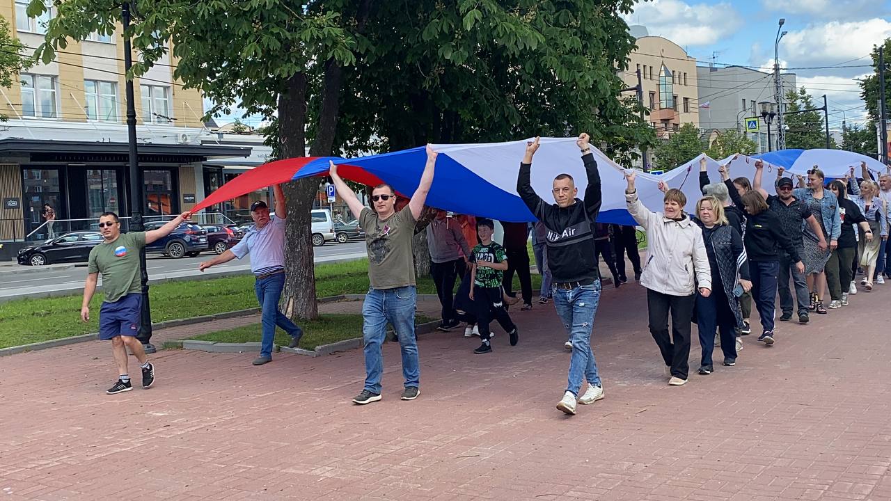 С раннего автомобилисты – члены различных партий, ветеранских общественных организаций региона и бойцы ЧВК "Вагнер" собрались у ТЦ "Аксон" и колонной проехали по улицам города до Площади Победы, где были проведены флешмобы "Россия в Сердце" и "Встанем".