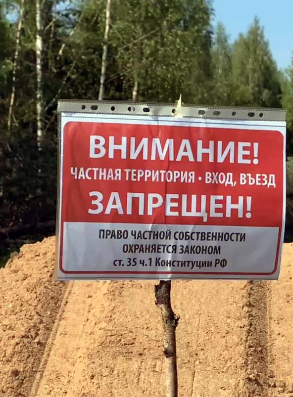 Однако утром ребята, приехав на место с грузовыми машинами, и всем необходимым, увидели, что дорога на подготовленное частное поле, засыпана огромными кучами песка и загорожена нагромождением свежеспиленных деревьев. Над кучей песка на заваленной дороге общего пользования красовалась табличка, которая гласила, что земля частная.