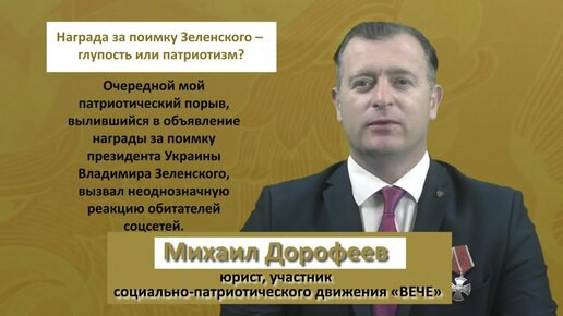 Михаил Дорофеев о награде за поимку Зеленского, видеоролик можно посмотреть по ссылке: