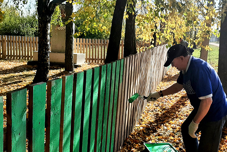 КИНЕШЕМЦЫ ПОКРАСИЛИ ЗАБОР НА ТЕРРИТОРИИ КУЛЬТУРНО-МУЗЕЙНОГО ЦЕНТРА ИМ. МАРШАЛА А.М. ВАСИЛЕВСКОГО В Д. ВАХУТКИ