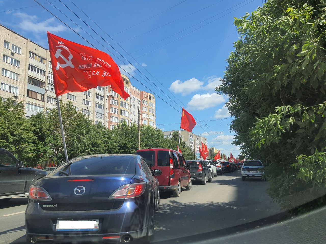Более 20 машин, под руководством члена ЦК КПРФ, Первого секретаря Ивановского обкома партии Александра Бойкова, украшенные красными флагами КПРФ, СССР, копиями Знамени Победы, движений «Левый Фронт», «За новый социализм» и Ленинского Комсомола, проехали по центральным улицам Родины Первого Совета и затронули большинство микрорайонов города Иваново.