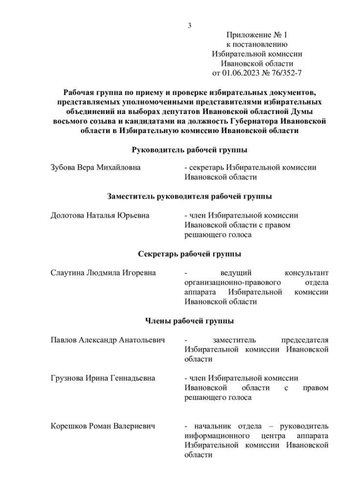 Возглавила рабочую группу секретарь Ивоблизбиркома Вера Зубова. Положение о рабочей группе Избирательной комиссии Ивановской области по приему и проверке избирательных документов можно почитать здесь .