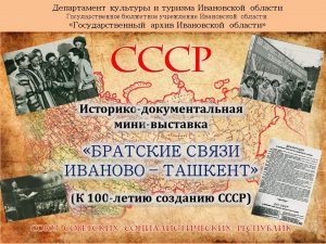 МИНИ-ВЫСТАВКА «БРАТСКИЕ СВЯЗИ ИВАНОВО-ТАШКЕНТ (К 100-ЛЕТИЮ ОБРАЗОВАНИЯ СССР»)