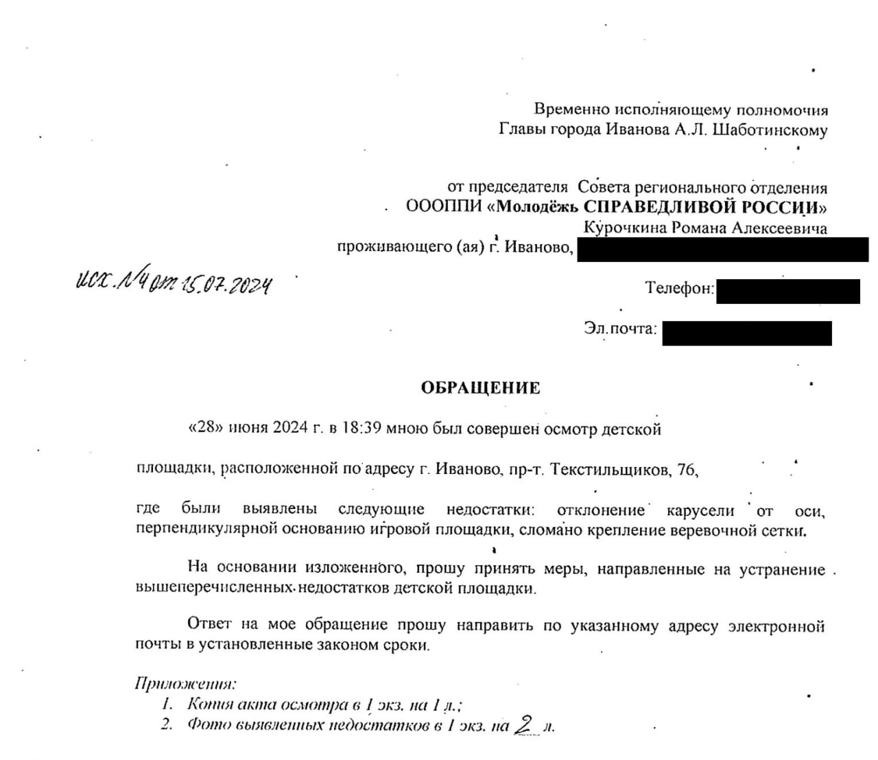 В связи с этим они направили обращения новому Главе города Иванова Александру Шаботинскому.