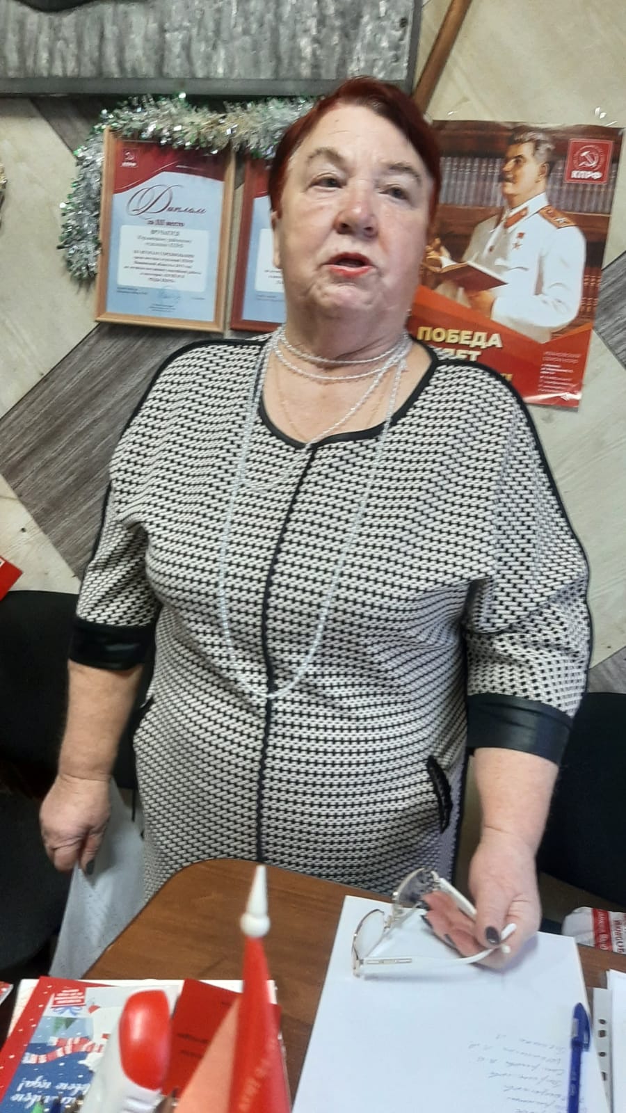 Далее Мария Михайловна выступила перед присутствующими с сообщением о заслугах И.В. Сталина перед государством за период его правления, посвященноым 145-летию со дня его рождения.
