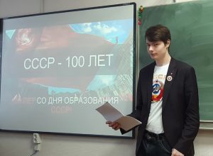 На днях в Ивановском колледже сферы услуг комсомолец Ивановского городского отделения ЛКСМ РФ Артем Абрамов провел для группы студентов урок, посвященный 100-летию со дня образования Советского Союза.