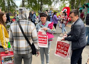 В завершение праздника всем присутствующим жителям населенного пункта были вручены красочные пакеты с символикой КПРФ.