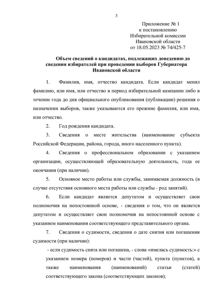 Избирательная комиссия Ивановской области на минувшей неделе определилась с объемом сведений о кандидатах, подлежащих доведению до сведения избирателей при проведении выборов губернатора региона в сентябре 2023 года, а также с перечнем подлежащих опубликованию сведений о доходах, об имуществе, об обязательствах имущественного характера зарегистрированного кандидата на должность губернатора Ивановской области, его супруги (а) и несовершеннолетних детей (на основании данных, представленных самими кандидатами).