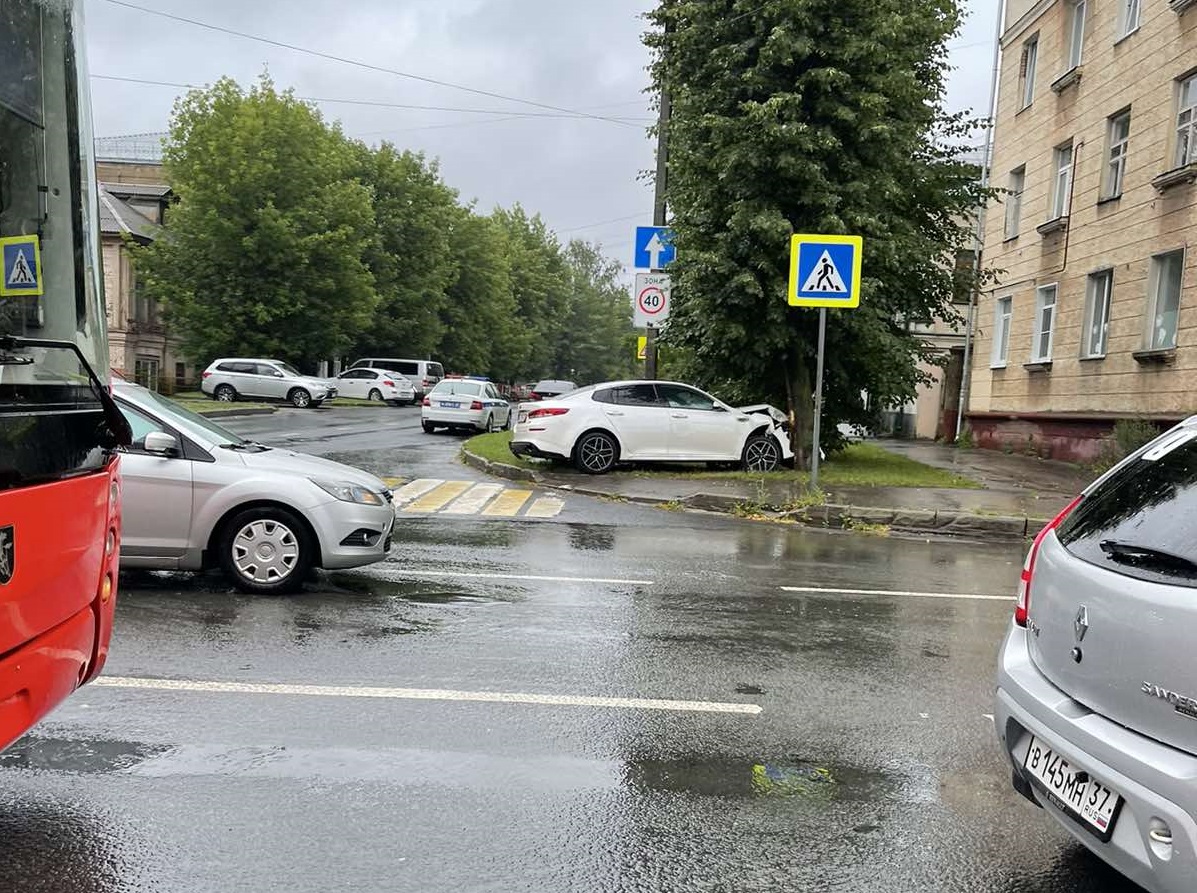 Иномарка в Иванове врезалась в дерево. Авария случилась на перекрестке улиц Почтовая и Театральная.