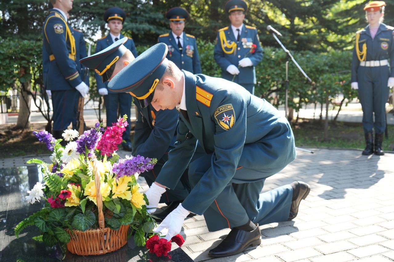 Перед началом торжества курсанты-выпускники вместе с ветеранами на Аллее Славы Академии возложили цветы к Памятному мемориалу сотрудникам, погибшим при исполнении служебного долга. Затем настоятель Храма иконы Божией Матери Неопалимая Купина протоиерей Александр совершил молебен и церемонию и церемонию благословения выпускников.