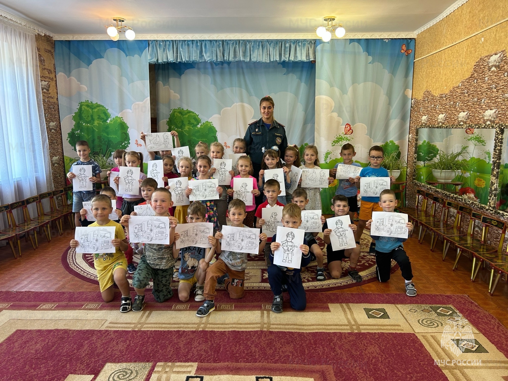 Также детям были вручены раскраски на тему «Пожарной безопасности».