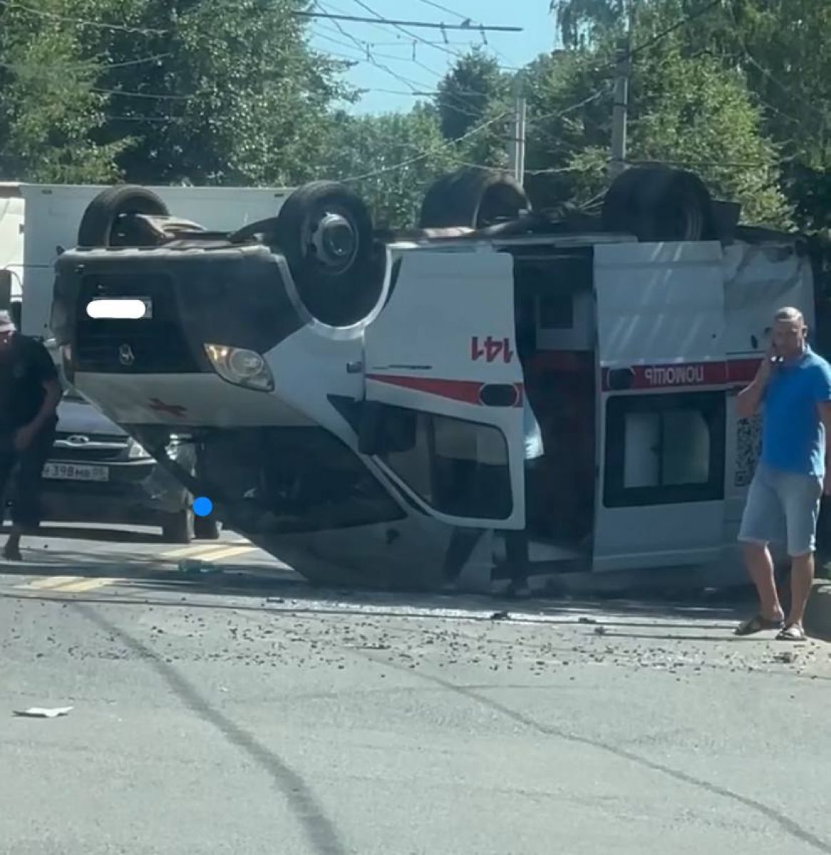 Пострадали двое медицинских сотрудников (у первого — закрытые черепно-мозговые травмы и сотрясение головного мозга, у второго — перелом стопы) и водитель «скорой» (закрытая черепно-мозговая и сотрясение головного мозга).