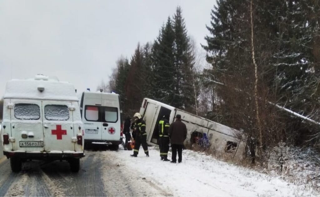 Утром 28 октября поступило сообщение о том, что в Палехском районе у деревни Окульцево автобус опрокинулся в кювет.