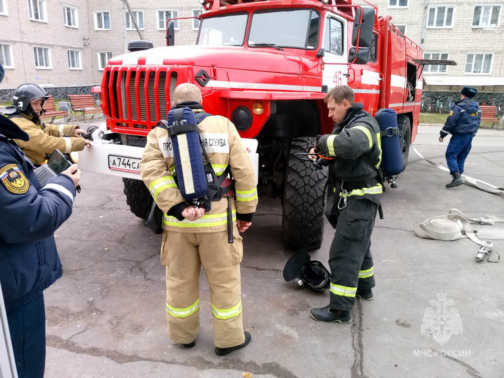 По замыслу был определен очаг возгорания (на втором этаже первого корпуса). После поступления команды медсестре о загорании телевизора в одной из комнат началась тренировка. Медсестра привела в действие систему противопожарной защиты объекта, нажав на ближайший ручной извещатель. Поступил сигнал «Пожар» остальному персоналу объекта и его дублирование в пожарно-спасательную часть № 46. Затем она с помощью переговорных устройств (рации) охраннику подтвердила информацию о загорании, и персонал объекта приступил к эвакуации проживающих через ближайшие эвакуационные пути и выходы в противоположную сторону от очага возгорания. По рациям персонал, охрана и администрация объекта могли общаться и передавать руководителю тушения пожара количество эвакуированных человек и информацию по проведенным действиям по тушению условного очага возгорания. Первоначальное тушение осуществлялось персоналом с помощью внутреннего противопожарного водопровода и первичных средств пожаротушения. Под руководством начальника Пучежского местного пожарно-спасательного гарнизона Параничева Олега прибывшие пожарные подразделения выполняли свои действия по эвакуации людей из здания и тушению условного очага возгорания. Звено газодымозащитной службы на носилках вынесли со второго этажа с помощью спасательного устройства одного «пострадавшего».