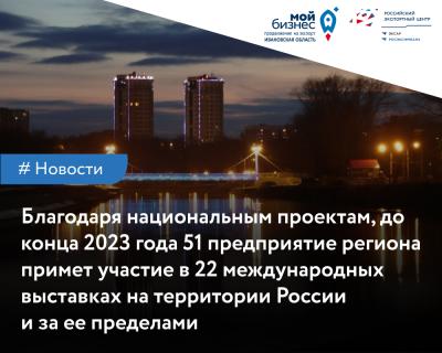 Благодаря национальным проектам, до конца 2023 года 51 предприятие региона примет участие в 22 международных выставках на территории России и за ее пределами