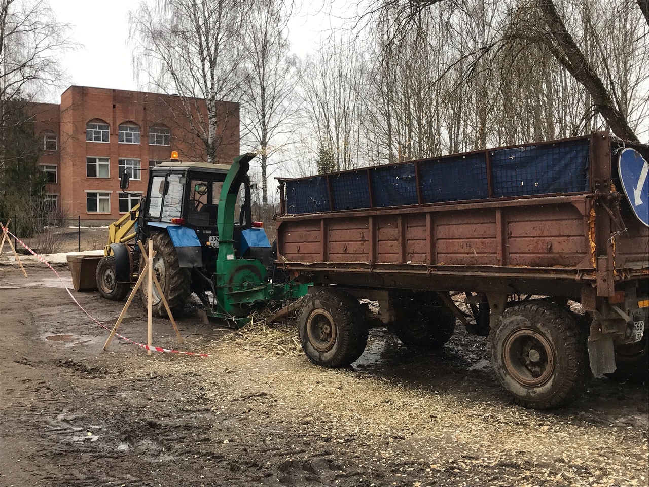 Сейчас МКУ "Благоустройство территории Палеха" производит выпиливание с территории старых деревьев и кустов.